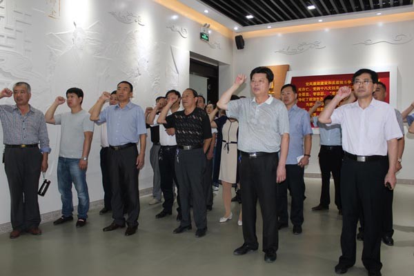 参观结束后,在庄严的党旗前,集团党委书记、董事长李信强带领全体参观人员重温入党誓词。