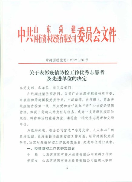 在近期疫情防控期间,公司广大志愿者积极响应市委、市政府和伟德国际1946源于英国党委号召,主动请缨,逆行而上,勇敢奔赴疫情防控第一线,用大爱和责任筑起“菏”心抗疫的坚固防线,体现了菏建人的责任与担当,成为一支菏泽抗疫联防联控、群防群治的重要力量,涌现出一批优秀志愿者和先进单位。