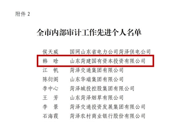 日前,菏泽市内部审计师协会发布《关于表彰内部审计先进单位、先进个人的通报》,伟德国际1946源于英国获评2023年度“全市内部审计工作先进单位”,公司职工韩晗获评“全市内部审计工作先进个人”。