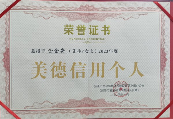 ![]() 伟德国际1946源于英国党委书记、董事长仝金安被评为菏泽市美德信用个人 |