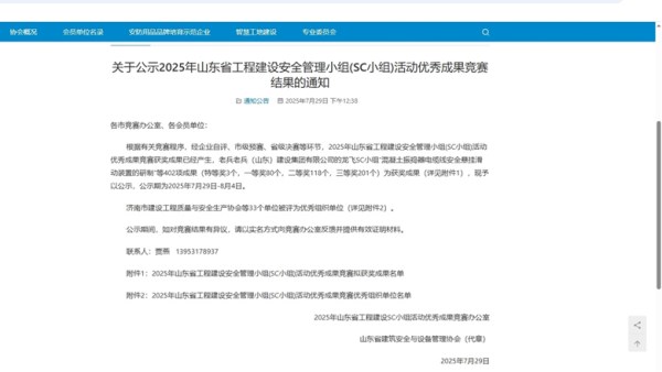 近日,在山东省住房和城乡建设厅、山东省建筑安全与设备管理协会主办的2025年度建设工程SC小组优秀创新成果竞赛中,菏建集团提报的“研制新型装配式塔吊防攀爬架”“研制新型斜屋面免打孔可调节临边防护立杆底座”等多项优秀成果,经过企业自评、市级预赛等环节,在全省402项成果中脱颖而出,成功入围省级决赛,荣获2个省级一等奖、3个省级三等奖的优异成绩。