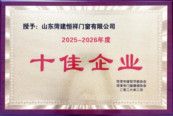 近日,山东菏建工业集团权属单位山东菏建恒祥门窗有限公司凭借深耕行业的深厚积淀、过硬的产品品质与强劲的创新实力,成功获评菏泽市建筑节能协会、菏泽市门窗幕墙协会2025—2026年度“十佳企业”称号。这份荣誉既是对恒祥门窗专业能力的认可,更是菏建工业集团深耕建筑配套产业、推动高质量发展的重要成果。