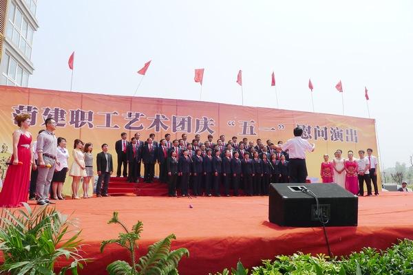 为响应菏泽文化强市建设,进一步丰富职工的业余文化生活,4月29日上午,值“五一”国际劳动节和“五四”青年节来临之际,菏建职工艺术团到定陶滨河春天工地进行慰问演出。