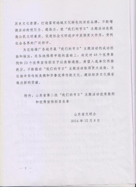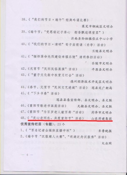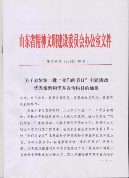 近日,在全省第二批“我们的节日”主题活动优秀案例和优秀宣传栏目评选活动中,集团《“关心老同志,共度重阳节”活动》案例被山东省精神文明建设委员会办公室被评为优秀案例。