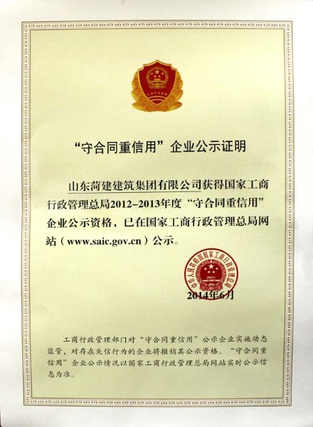 ![]() 国家级“守合同重信用”企业公示证明 |